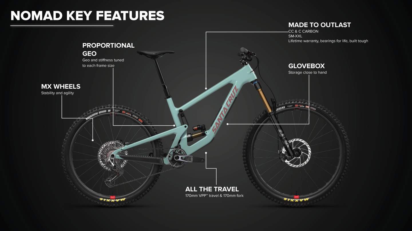 Kadro: Santa Cruz Nomad Carbon C, 170mm VPP™ Travel