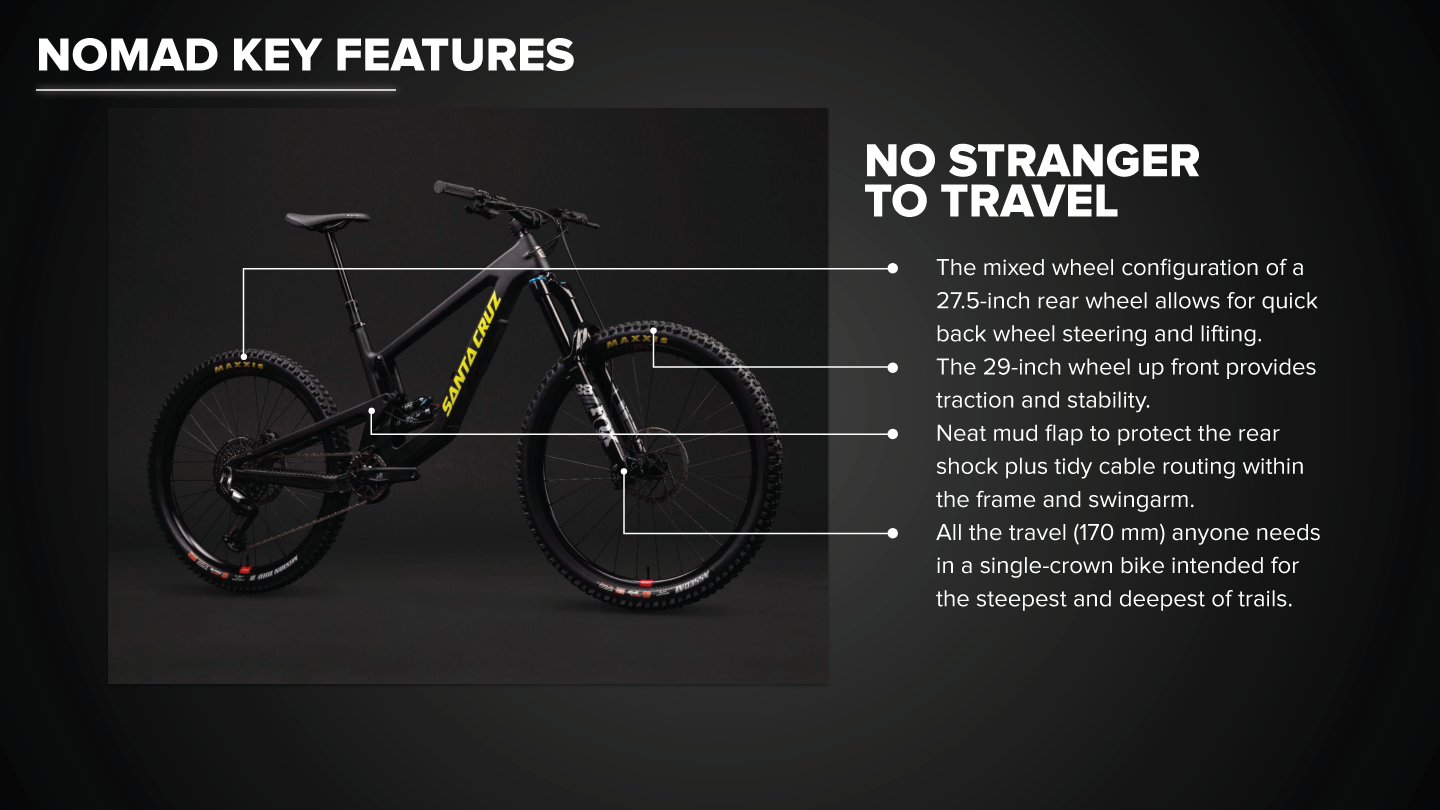 Ölümsüz bir bisiklet mi arıyorsun? Daha uzağa bakmana gerek yok. 170mm VPP arka travel, 170mm ön travel, 27.5 inç arka, 29 inç ön teker ile Nomad hazır, ya sen?