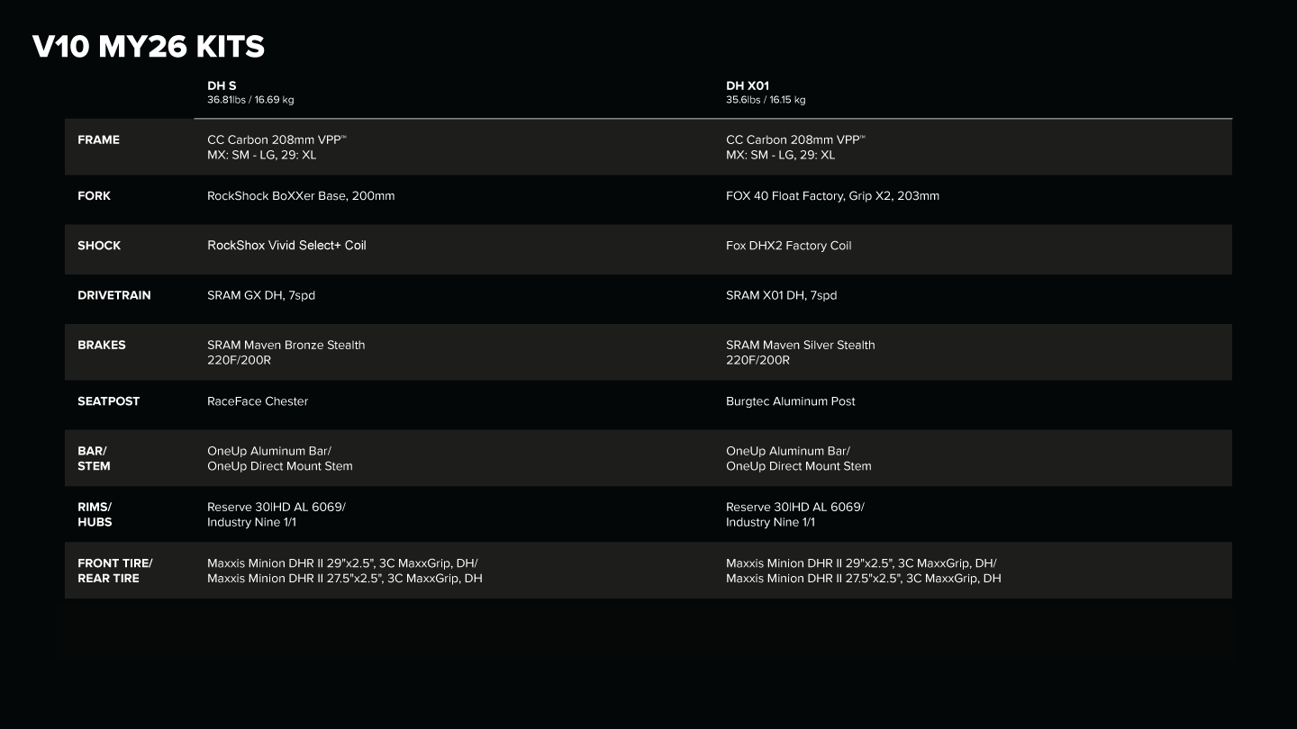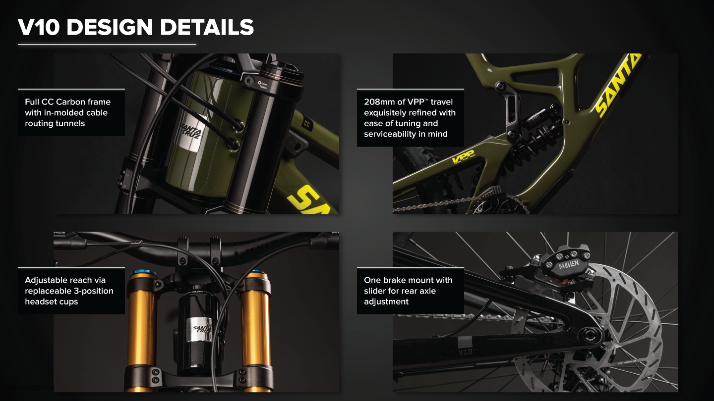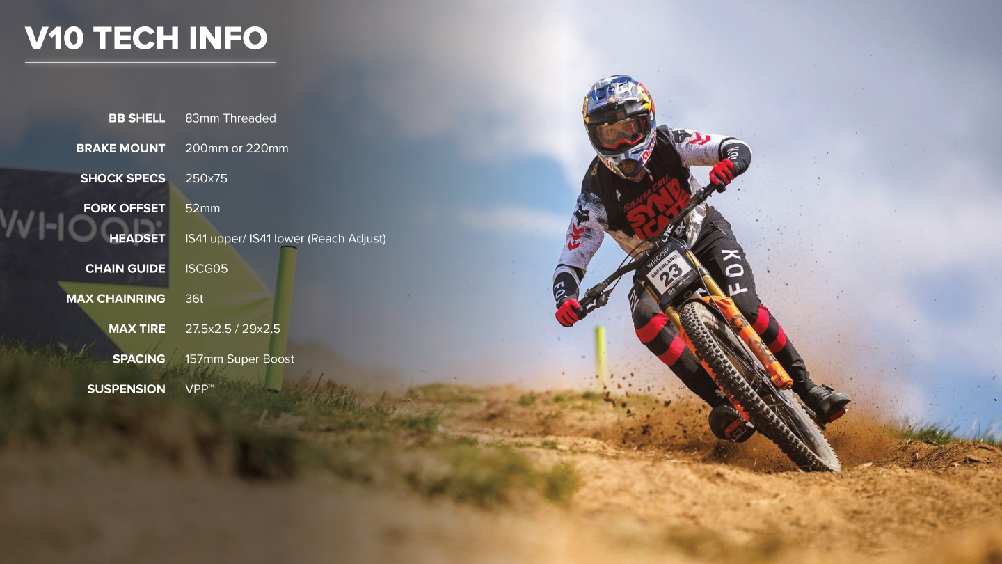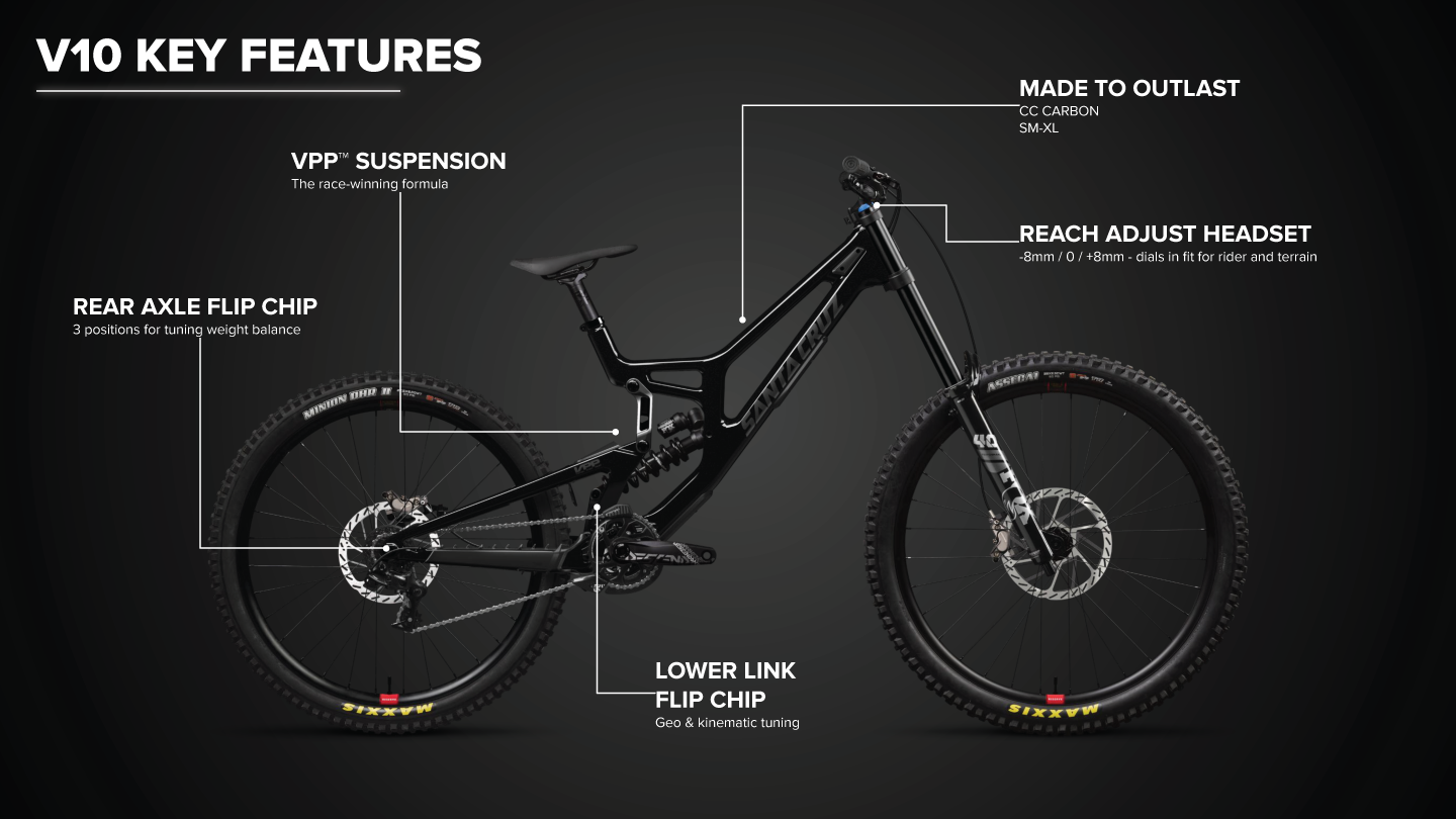 Üstün geometri, üstün süspansiyon tasarımı ve şampiyonluk tarifi ile tasarlanmış V10, 208mm VPP arka travel ile her darbeye hazır.